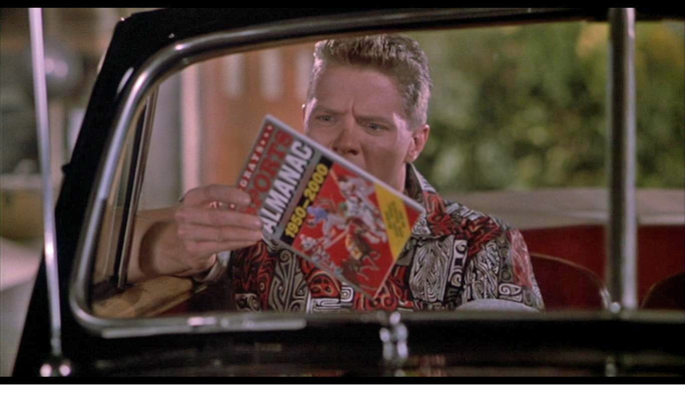 In 1955, young Biff Tannen reads a book from the future, from 2015 - the Principia Discordia, hidden inside a sports almanac